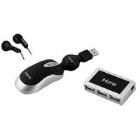 iHome Netbook Accessory Kit - Optical Mouse, 4-Port USB 2.0 Hub, Ear Buds w/Built-in Microphone (Black/Silver)